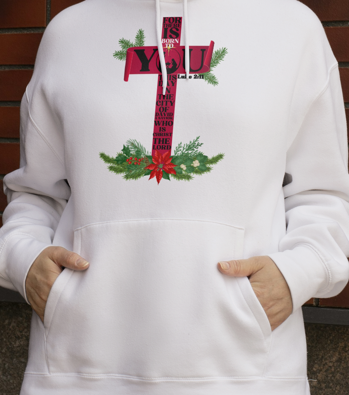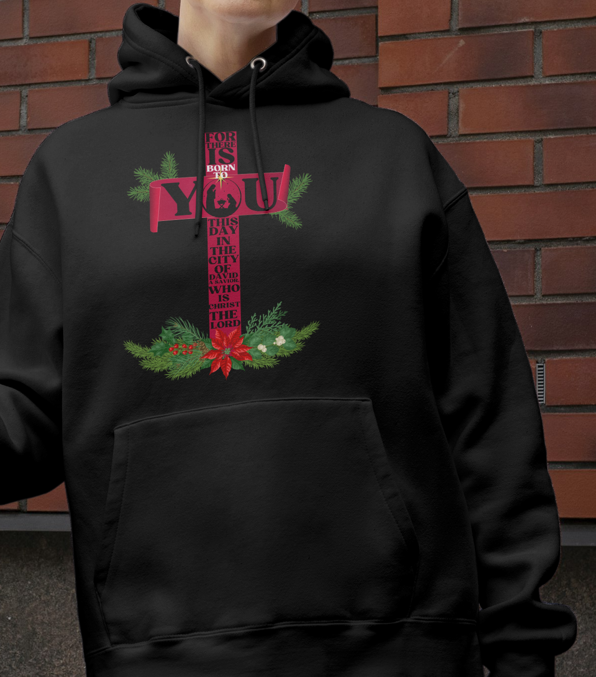 The Christmas season is to remind us of our savior's birth. This design features Luke 2:11 which says For there is born to you this day in the city of David a Savior, who is Christ the Lord. The scripture is written out down a cross. The substitues a "Christmas tree" and has gifts at the foot and a star on top.