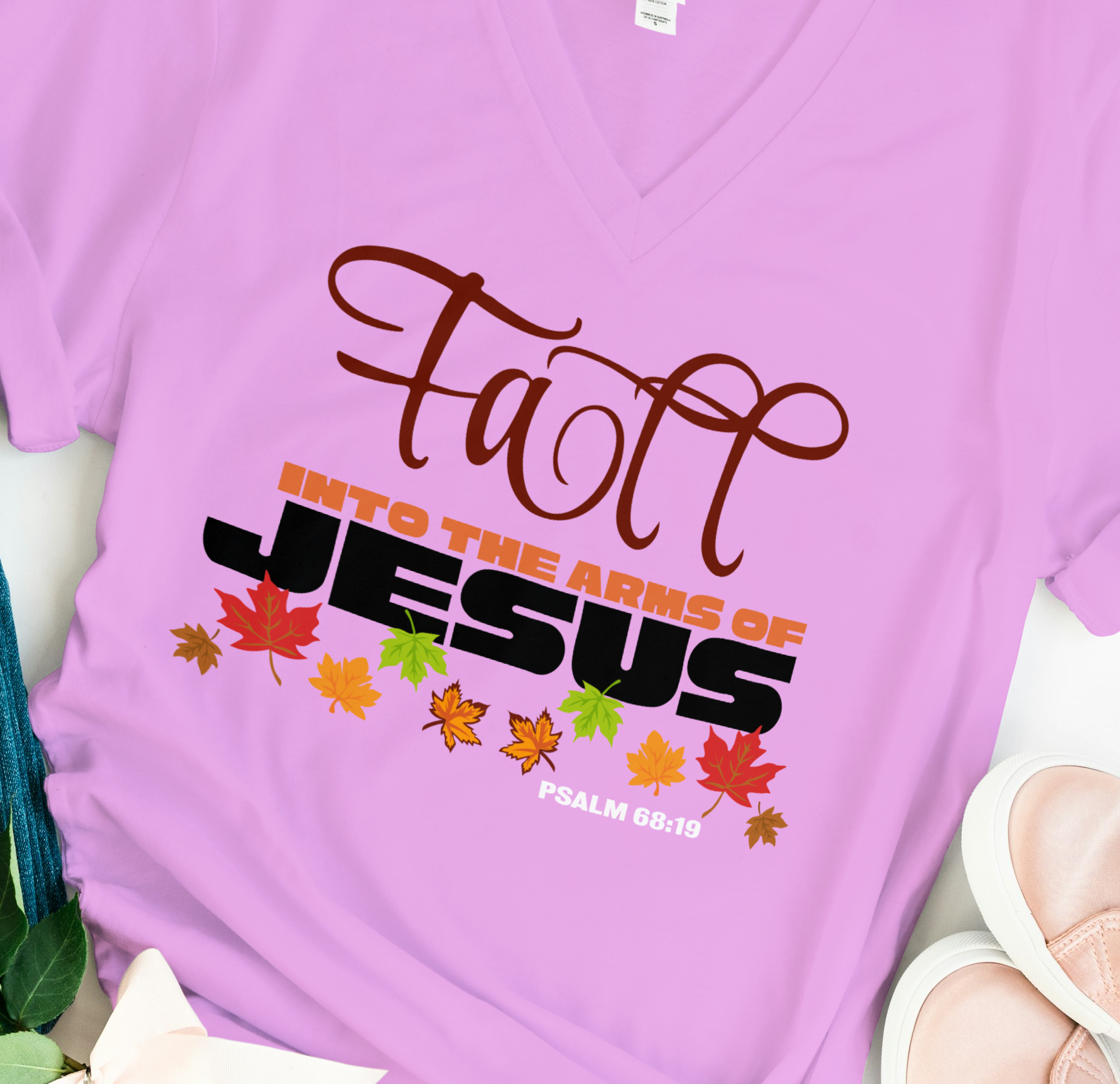 Just added to our fall collection...Says Fall into the arms of Jesus. Features the scripture Psalm 68:19 which says: Praise the Lord; praise God our savior!