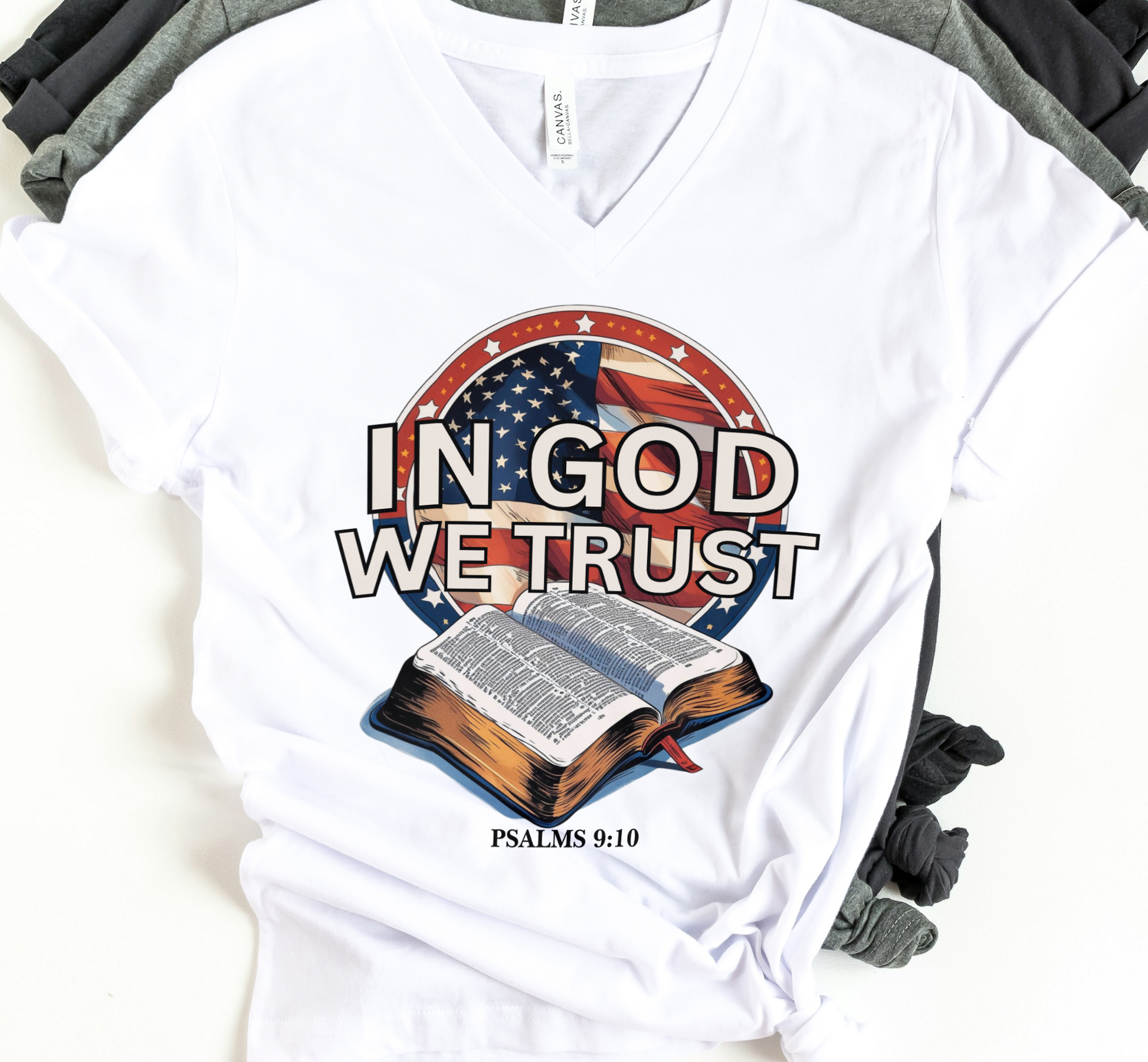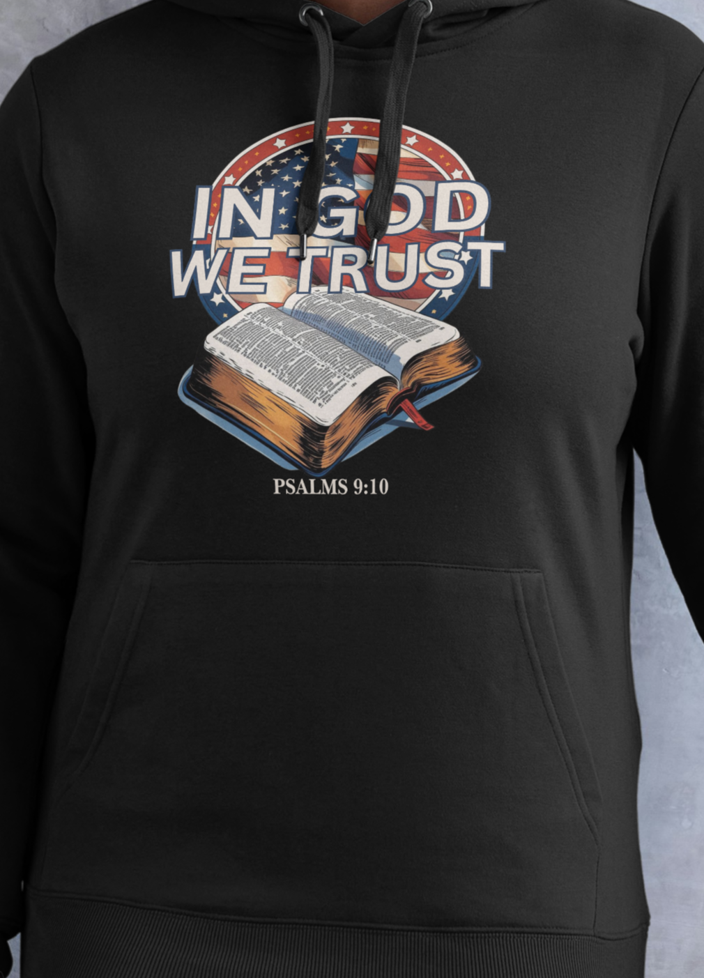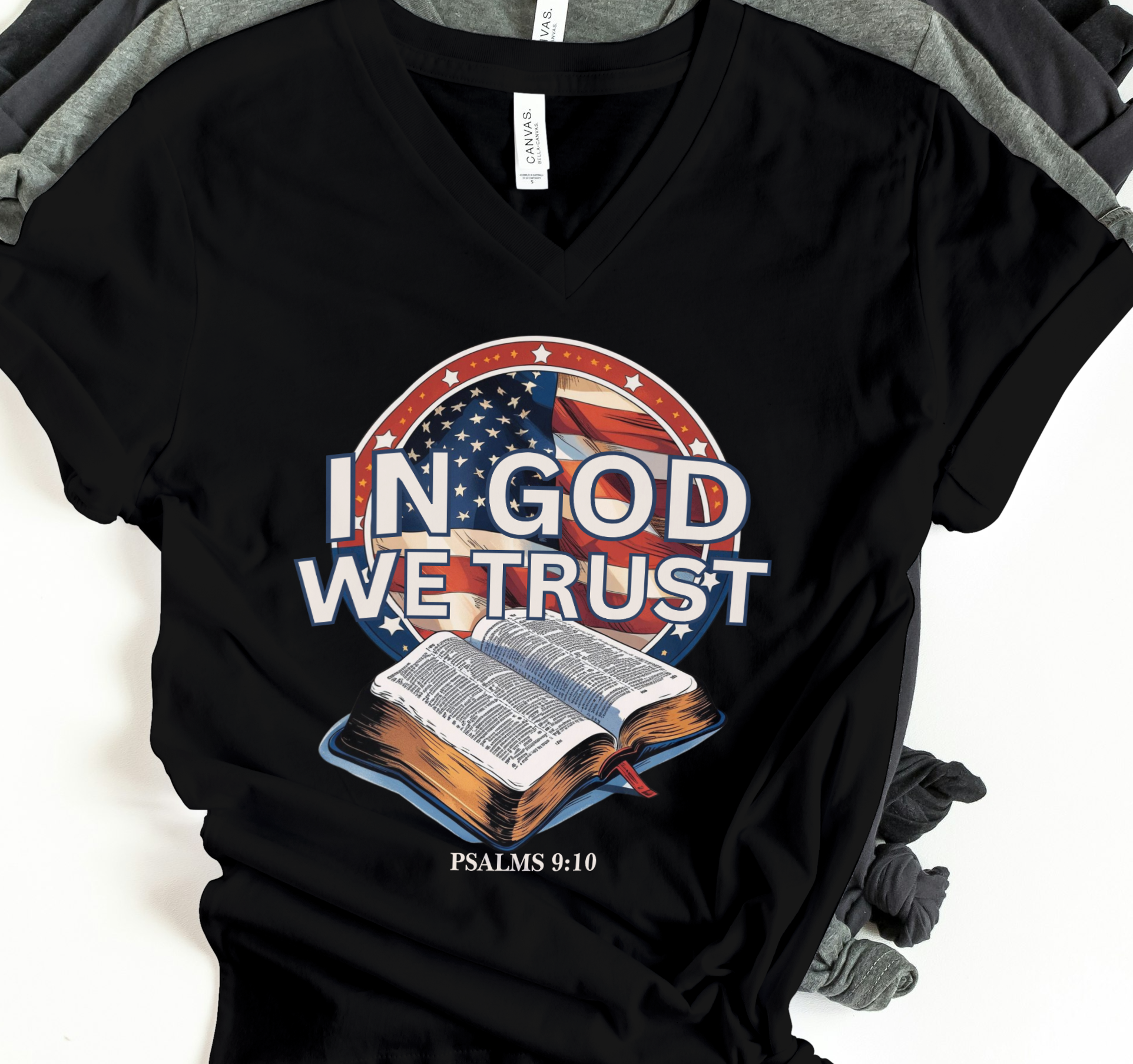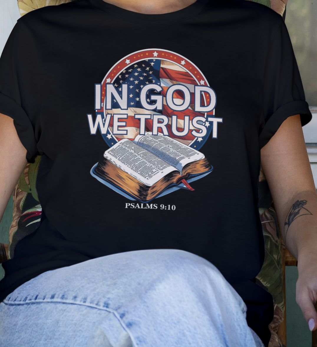 Simple circular design with an American flag and a bible. This country was founded on Christian principles that we need to get back to! This design also features the scripture Psalms 9:10 which says: And those who know Your name will put their trust in You;