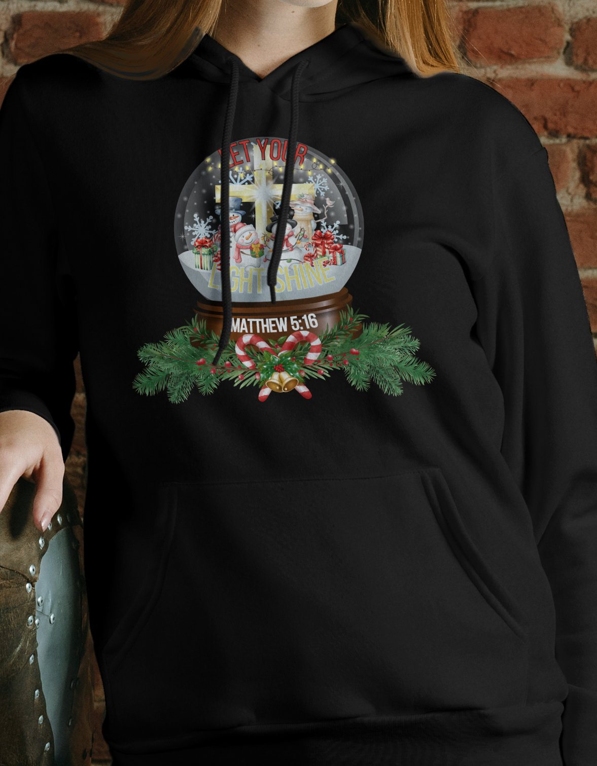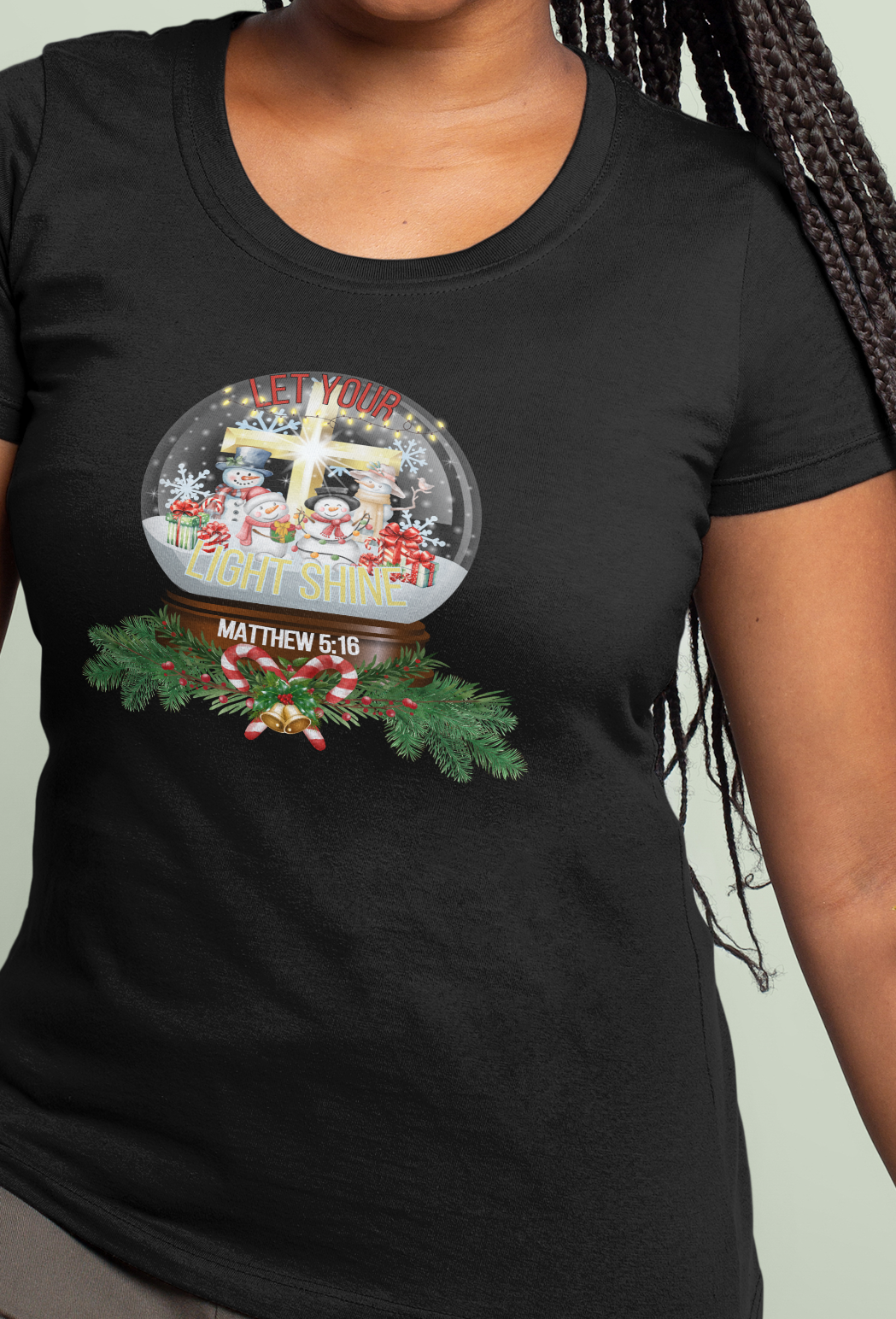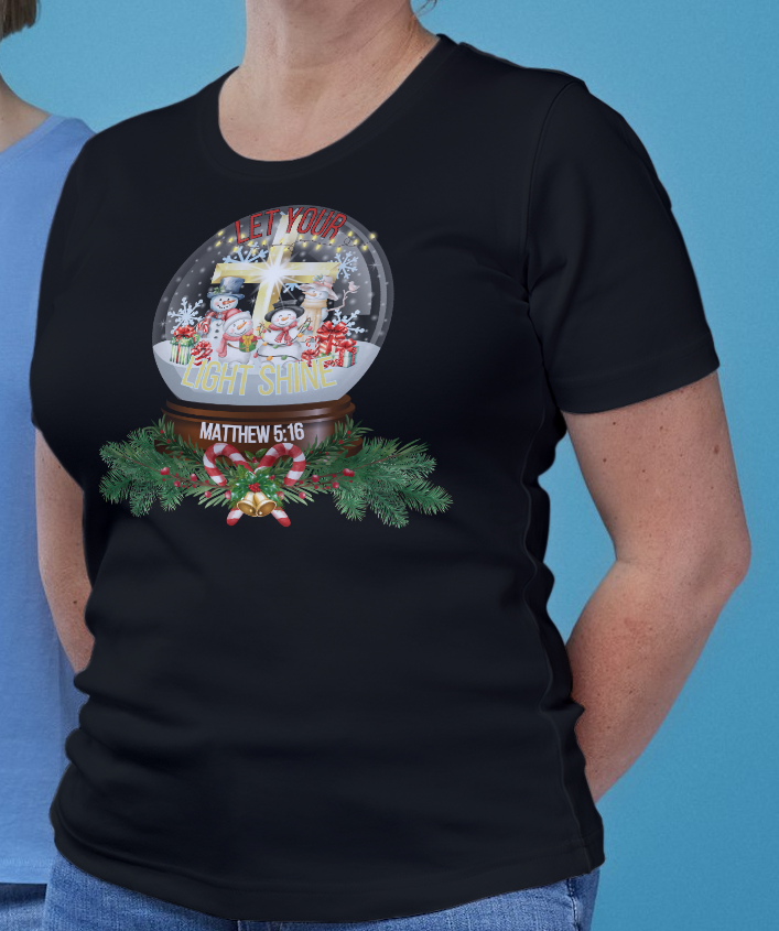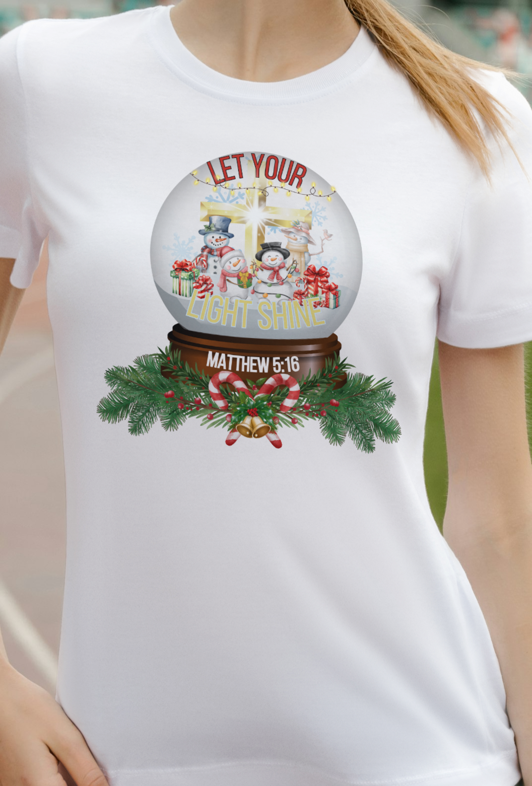 Cute Christmas snow globe with snowmen and a cross inside. It features Matthew 5:16 which says: Let your light so shine before men, that they may see your good works and glorify your Father in heaven. Remind others that the light (Jesus) in you helps us to glorify God this season!