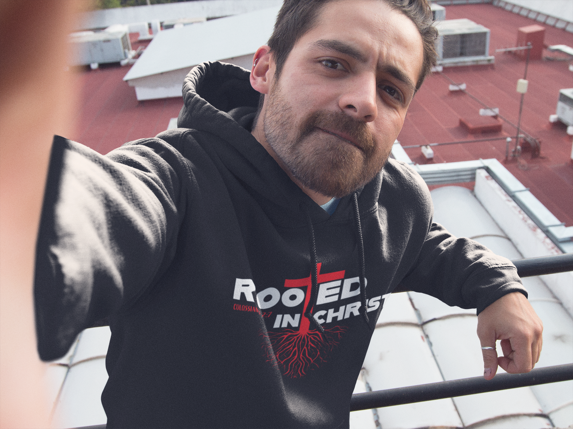 - Short sleeves or hooded sweatshirt with a bold cross with roots used as the "T" in rooted in Christ
