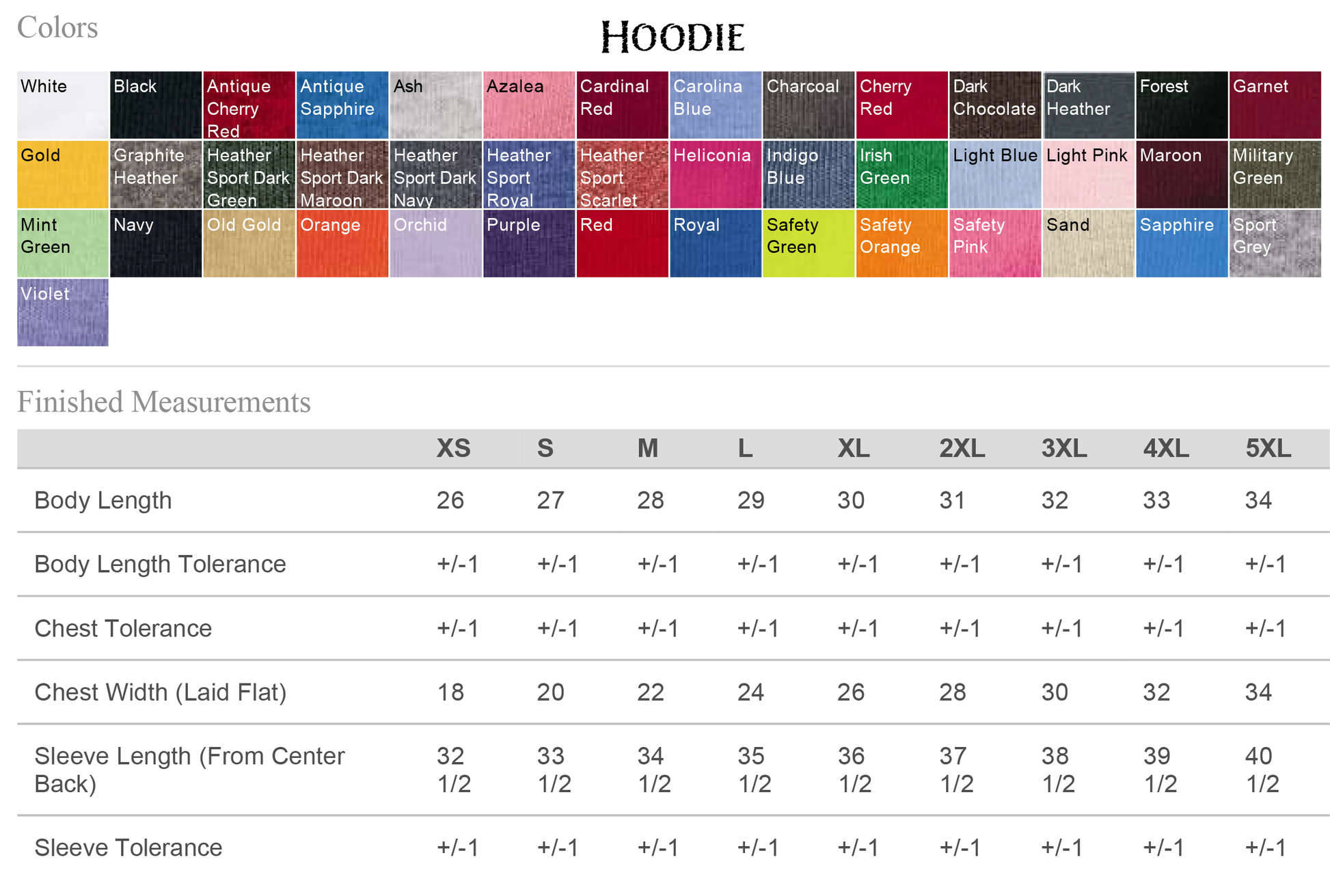 - Hooded Sweatshirt is 50/50 cotton/polyester in a classic fit and double-lined hood with color-matched draw cord. It has a pouch pocket; available in sizes XS-5XL. Pink is only available in sizes S-3XL.