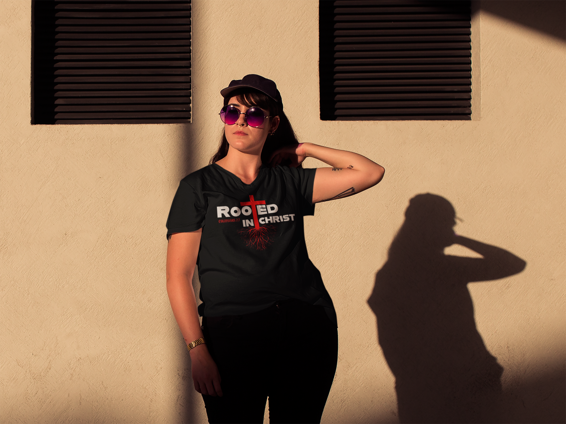 Wear your faith and shout to the world that your foundation is rooted in Jesus Christ. This shirt features the scripture Colossians 2:7 which says; rooted and built up in Him and established in the faith, as you have been taught, abounding in it with thanksgiving.